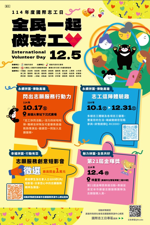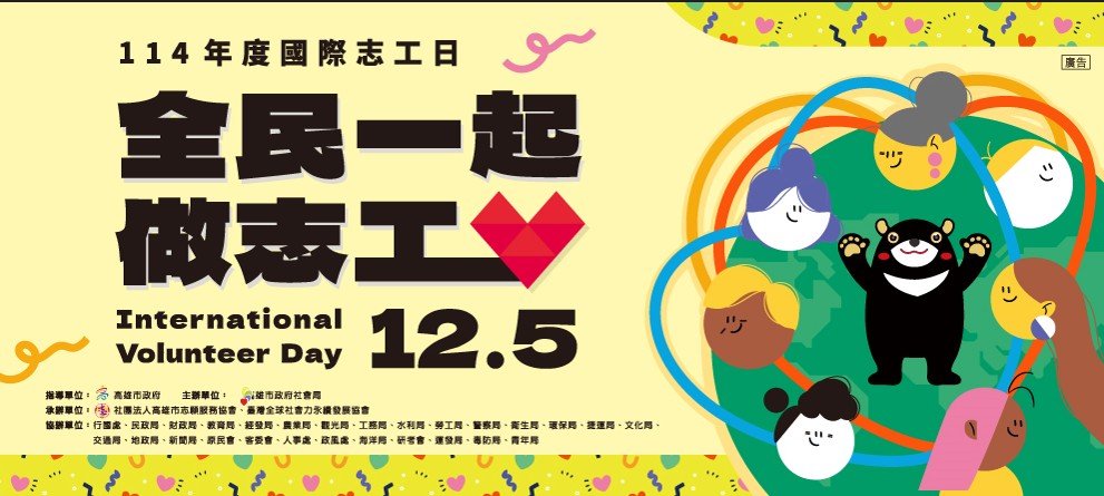 12月5日國際志工日,邀請市民朋友一起響應做志工